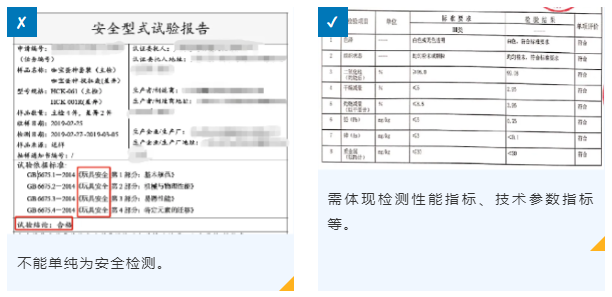 3.檢測報告需體現檢測性能指標、技術參數指標等,不能單純為產品功能檢測、安全檢測等,產品檢測指標的結果要高于標準。如下圖:
