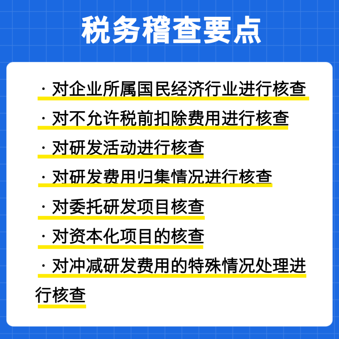 研發費用加計扣除稅務抽查一般會針對以下幾點展開: