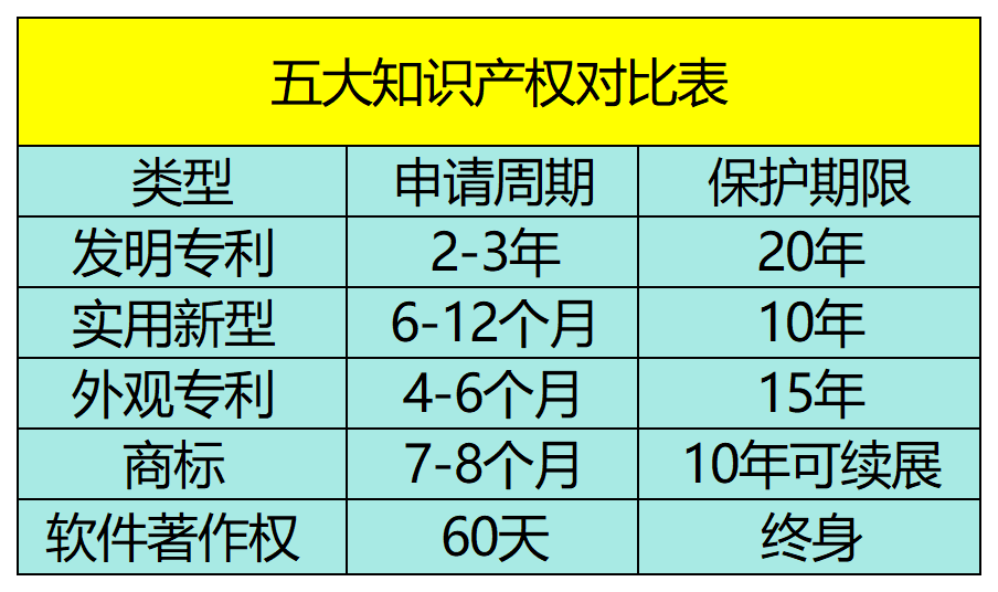 本文系統(tǒng)梳理發(fā)明專利、實(shí)用新型、外觀專利、商標(biāo)、軟件著作權(quán)五大類目的申請(qǐng)周期和材料清單,附時(shí)效對(duì)比表和避坑清單。