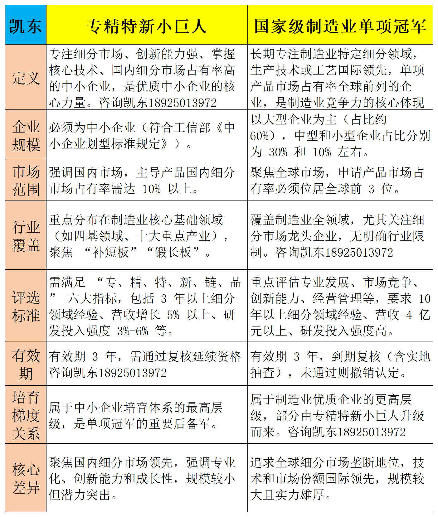 專精特新小巨人是 “國內細分市場隱形冠軍”,而單項冠軍是 “全球細分市場領導者”。前者注重培育和成長,后者注重成熟和壟斷地位。