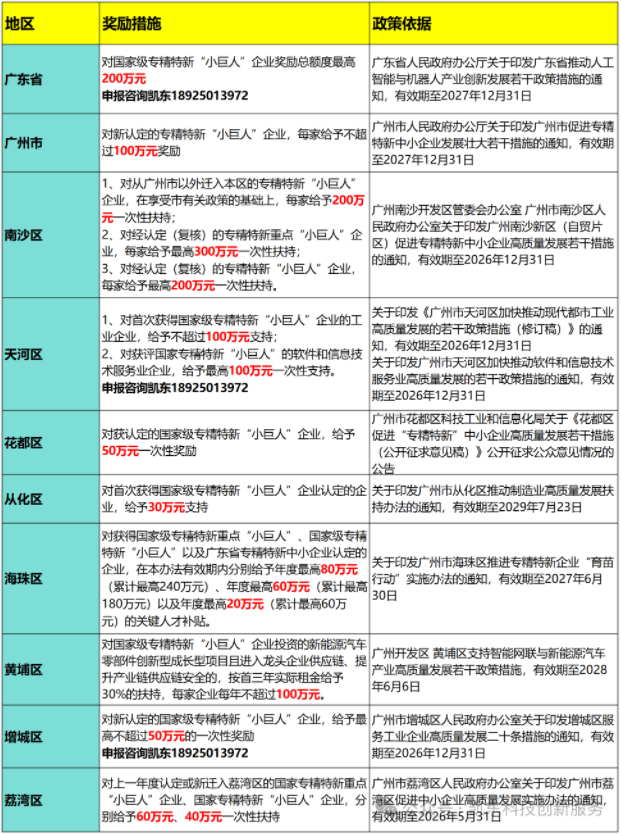 附【廣州市各區專精特新“小巨人”認定獎勵匯總】?