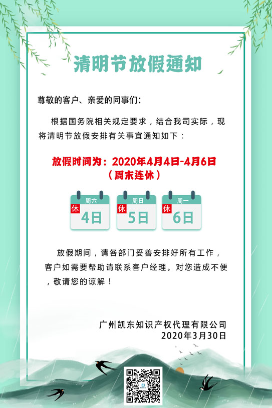 >>新聞資訊>>廣州凱東公司關于2020年清明節放假安排的通知